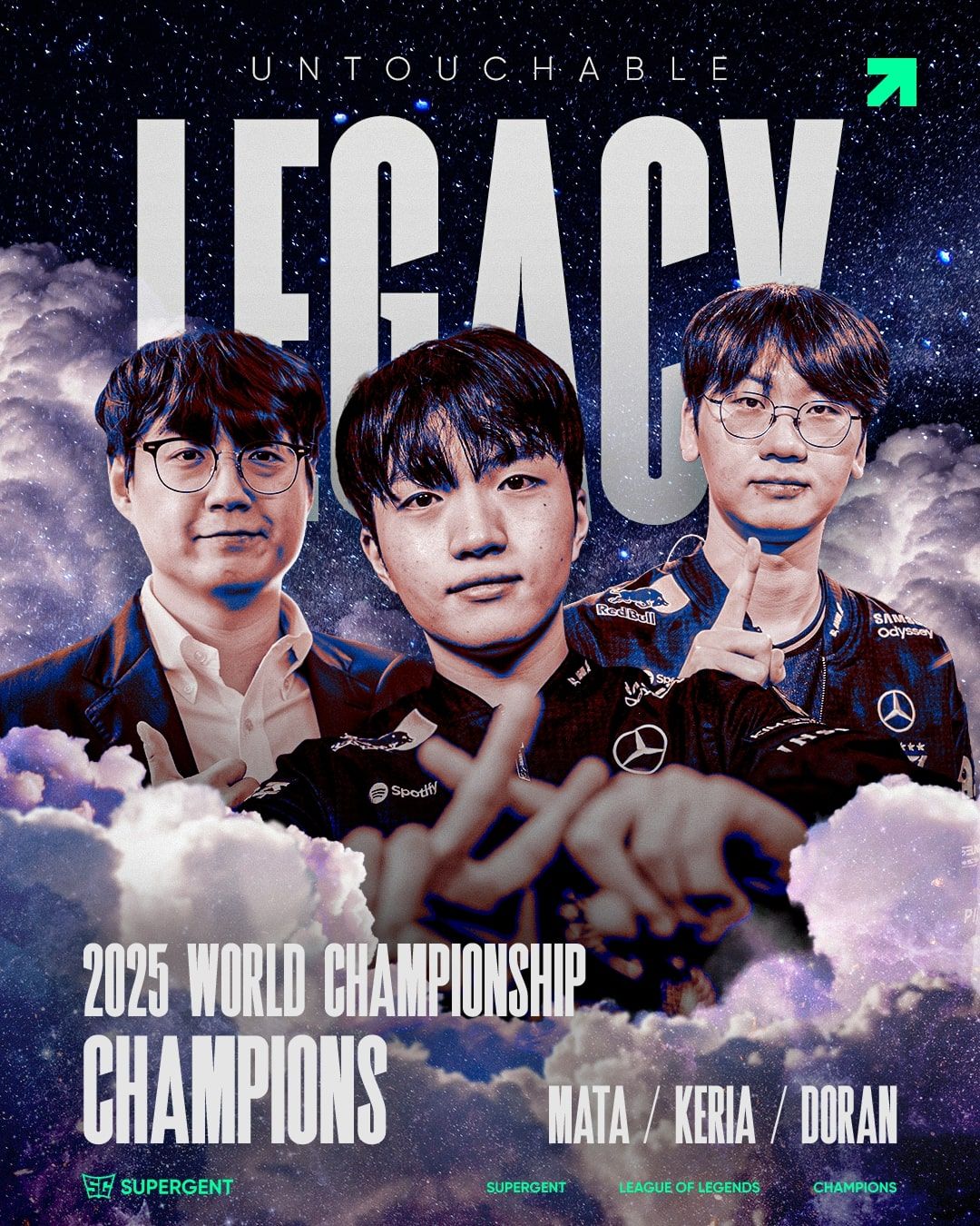슈퍼전트 가족 Doran, Keria, 그리고 Mata 코치가 함께한 T1이 2025 월드 챔피언십에서 우승을 차지했습니다! 도란 선수의 강인함...